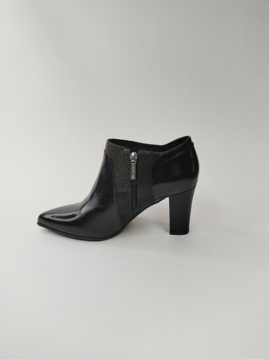 El forro interior textil suave junto a la plantilla de cuero acolchado brindan comodidad en cada paso. Su taco alto de madera (7 cm) estiliza la figura, mientras que la suela de goma antideslizante asegura estabilidad y seguridad. Un botín ideal para mujeres que buscan elegancia, confianza y comodidad tanto en ocasiones formales como en looks urbanos de otoño e invierno.